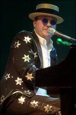 It had all the earmarks of a typical Elton John performance: The piano-pounding singer-composer was seated behind the keyboard, decked out in a glittery ensemble, a trademark boater perched jauntily atop his head. He delighted the crowd with spot-on versions of such signatures as "Crocodile Rock," "Your Song" and "Rocket Man."